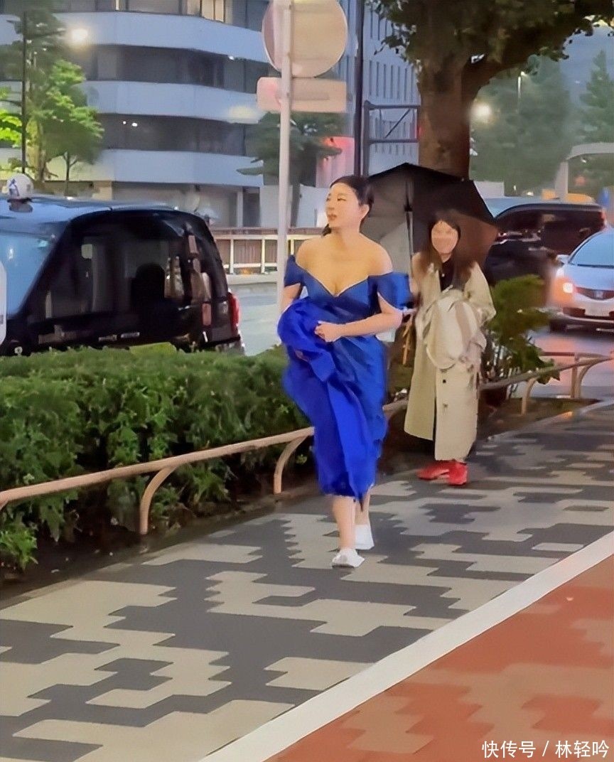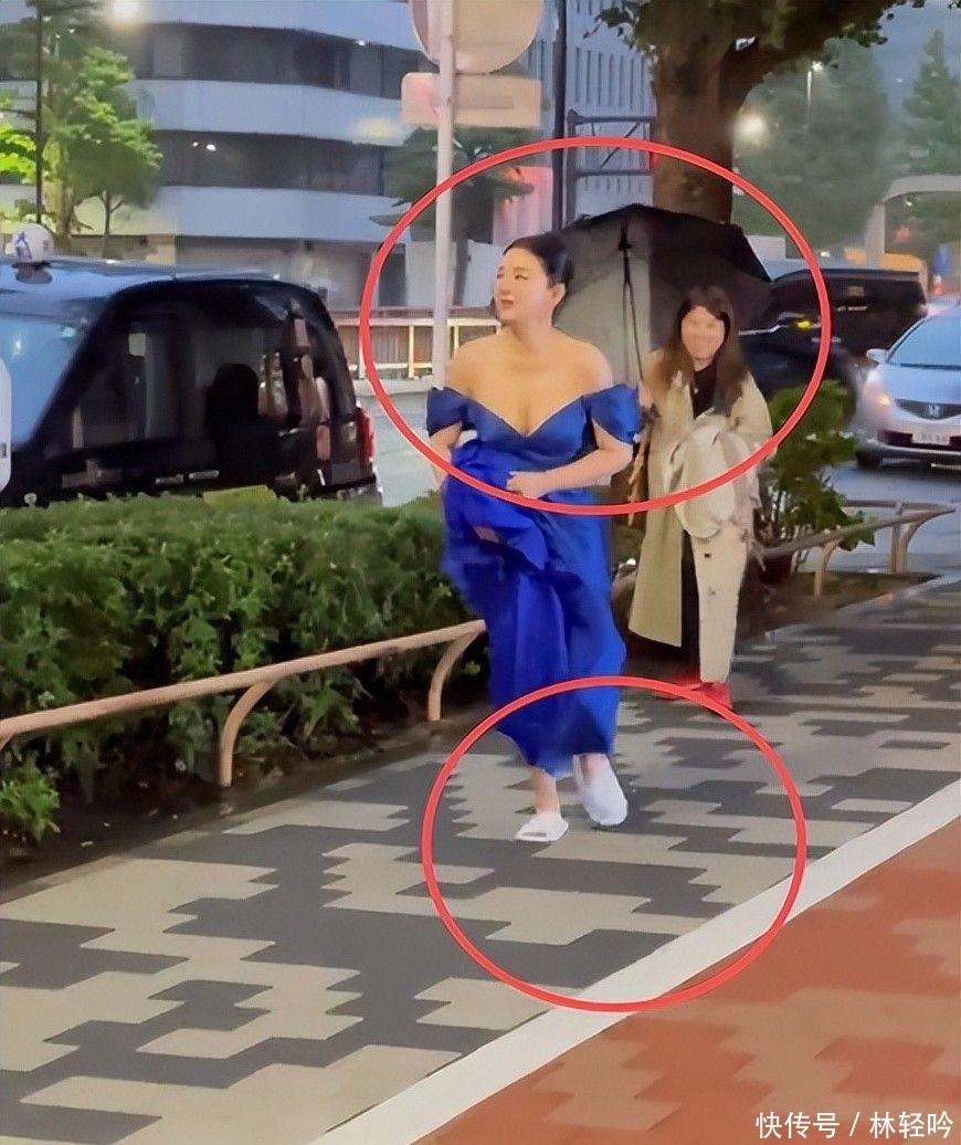 黄奕在日本街头赶场狂奔,穿酒店拖鞋礼服漏半个胸,腰背臃肿粗壮