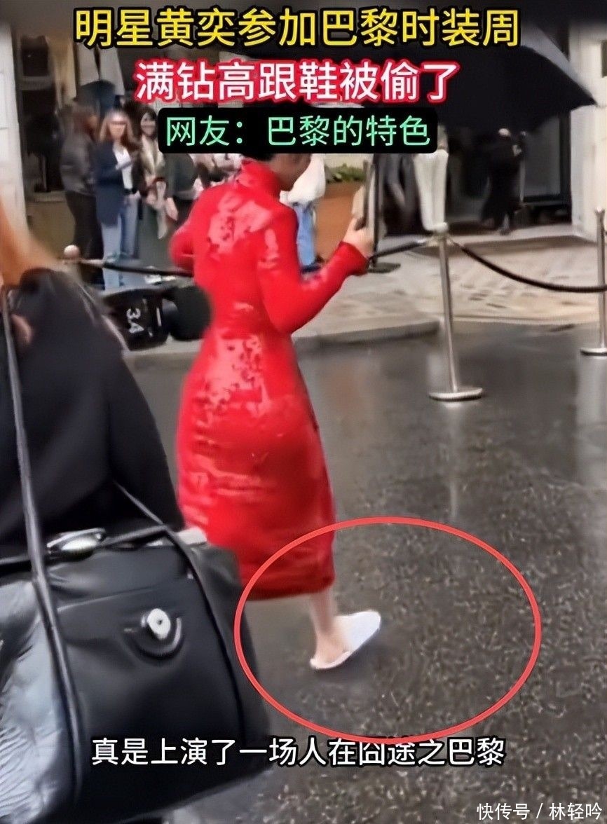 早在2024年9月巴黎时装周期间,她就因遗失镶嵌水钻的尖头高跟鞋,赤脚踩着酒店拖鞋跨过积水路面拍摄街拍大片。
